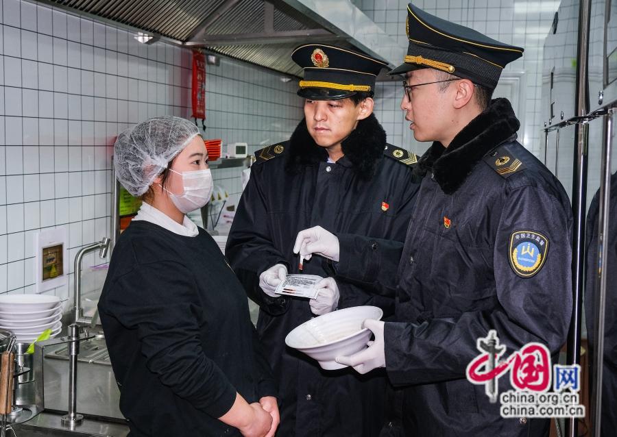 2月1日,疾控核心工做人员正在天津西坐收集配餐核心对配餐食物进行监视查看。